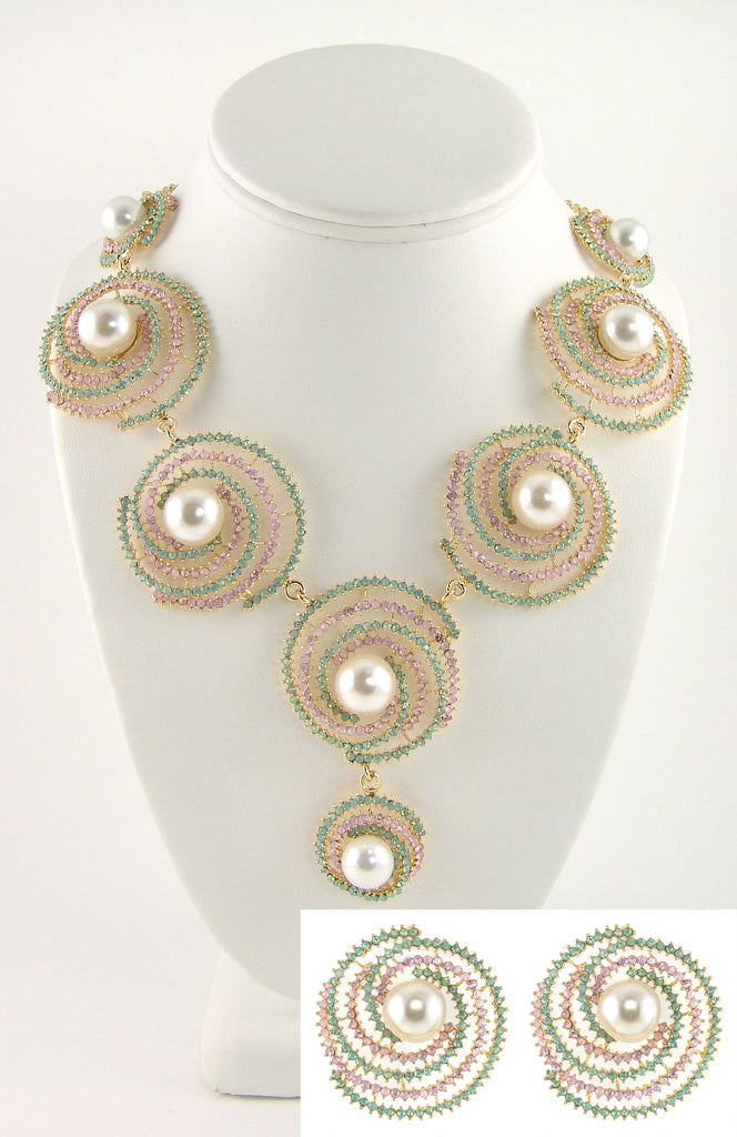 Elegant Circle Cochlea shape crystal Necklace_5 colors